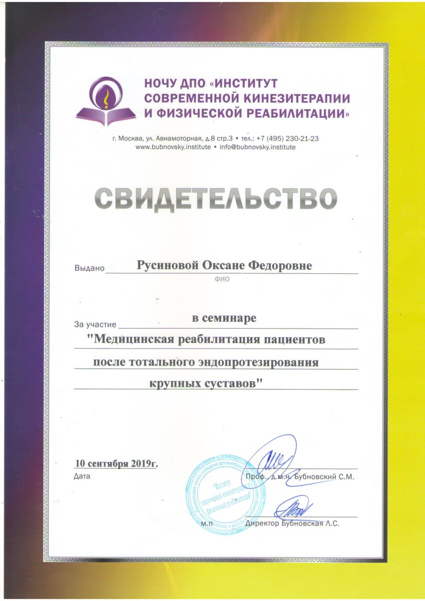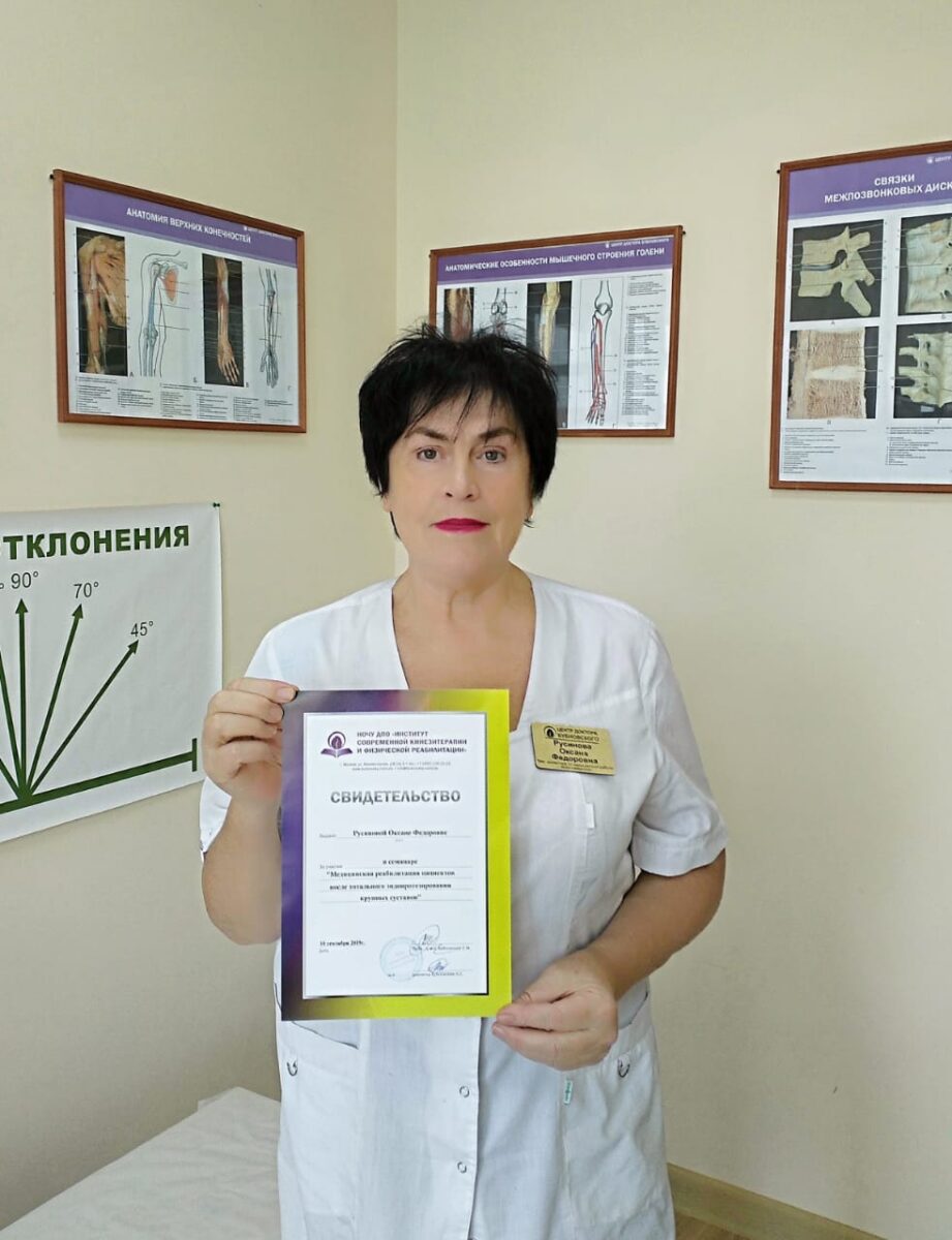 Поздравляем главного врача центра Оксану Федоровну Русинову с успешным окончанием обучения по программе повышения квалификации в институте Сергея Михайловича Бубновского в Москве!